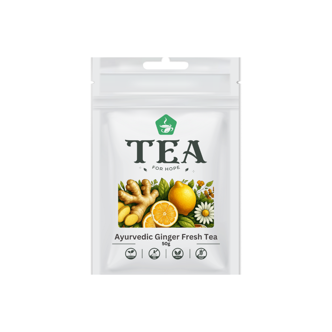 Ayurvedic Ginger Fresh Tea, our invigorating herbal infusion that embodies the ancient wisdom of Ayurveda. This revitalizing blend features a harmonious combination of zesty lemongrass, soothing licorice root, spicy ginger, refreshing peppermint, bright lemon peel, and a hint of bold black pepper.