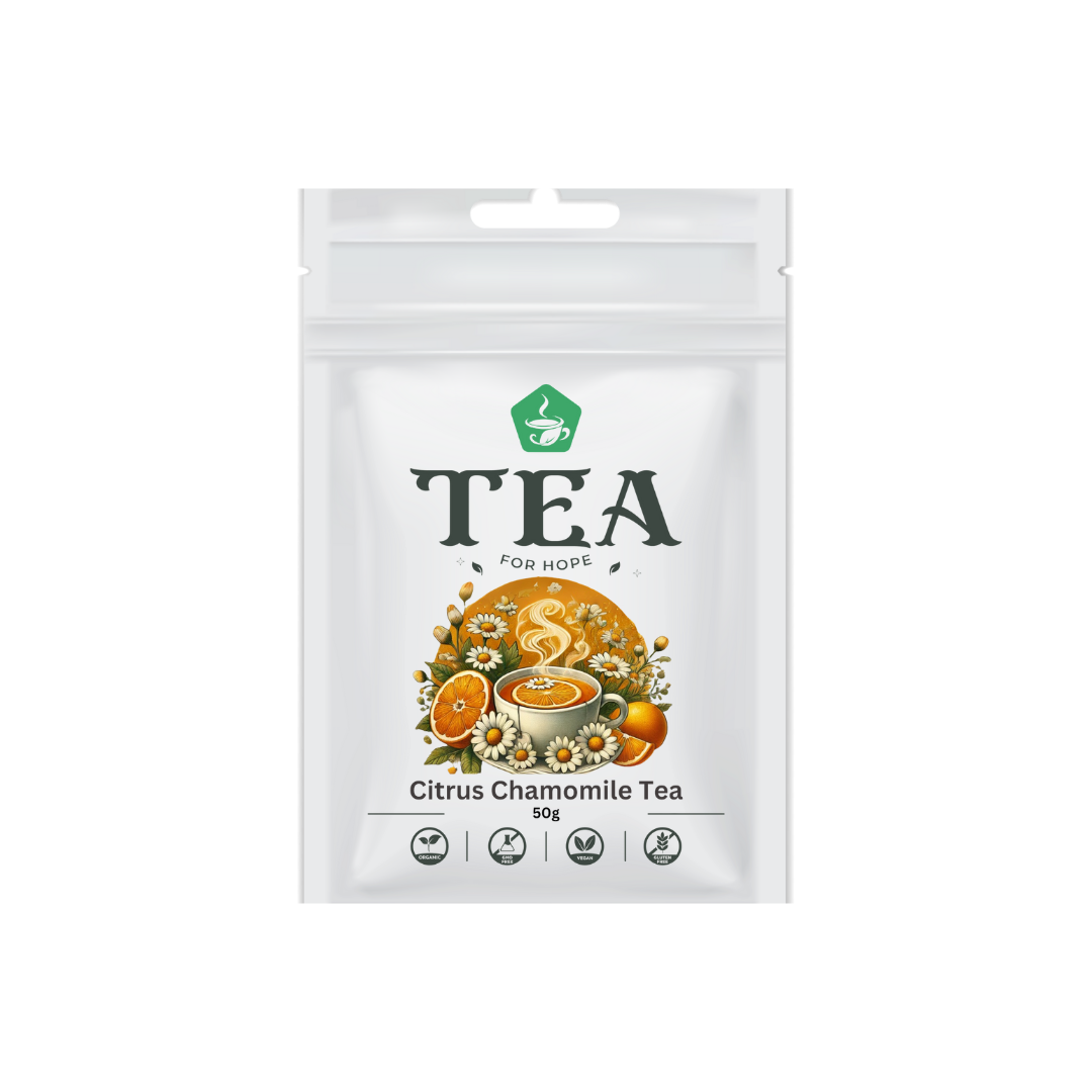 Citrus Chamomile Tea, our calming herbal blend designed to whisk you away to a tranquil Mediterranean orchard. Built upon a soothing chamomile base, this serene infusion delights the senses with the gentle floral sweetness of chamomile flowers, harmoniously paired with uplifting notes of zesty lemon and vibrant orange peel.